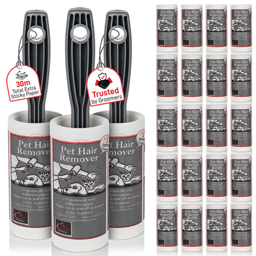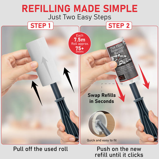 Ein 7,5 m langer Kleberoller mit 3 Nachfüllungen. Tolles Geschenk für jeden mit Katzen oder Hunden 1 Tierhaarentferner-Fusselrollerbürste + 3 Na...