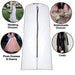 1 stabiler weißer Kleiderüberzug aus Peva/Polyethylen mit silbernem Kleiderbügel, unten ausgestellt für weite Kleider.